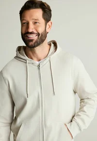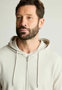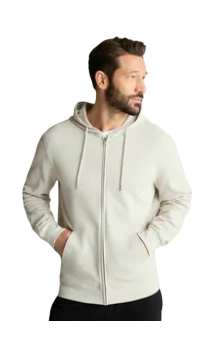 Der Essential Urban Zipper in Beige ist ein zeitloser Hoodie aus hochwertiger Baumwolle mit einem Hauch von Elasthan für Komfort und Flexibilität.